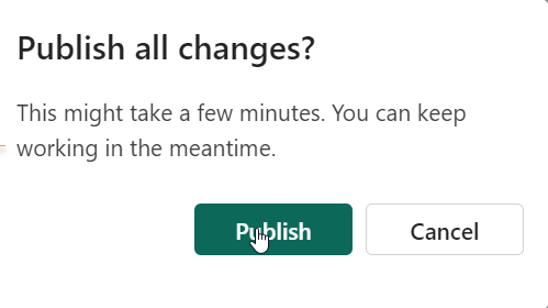 The next screen gives you the option to set up the data types and select the fields you wish to map into the Lakehouse table. Generally, using the automatic settings is fine. Unfortunately the data destination has to be set up for all the various queries (Dimension City, then Dimension Customer and so on). (If there is a way to do this for all queries at once, please let me know!). For the purposes of this Blog, I will set up just the Dimension City and Fact Sales tables to land in the Lakehouse. Once all the queries you want to profile are set up with a Destination, click “Publish”. The Dataflow will automatically publish and refresh. The refresh will load the data into the Lakehouse.