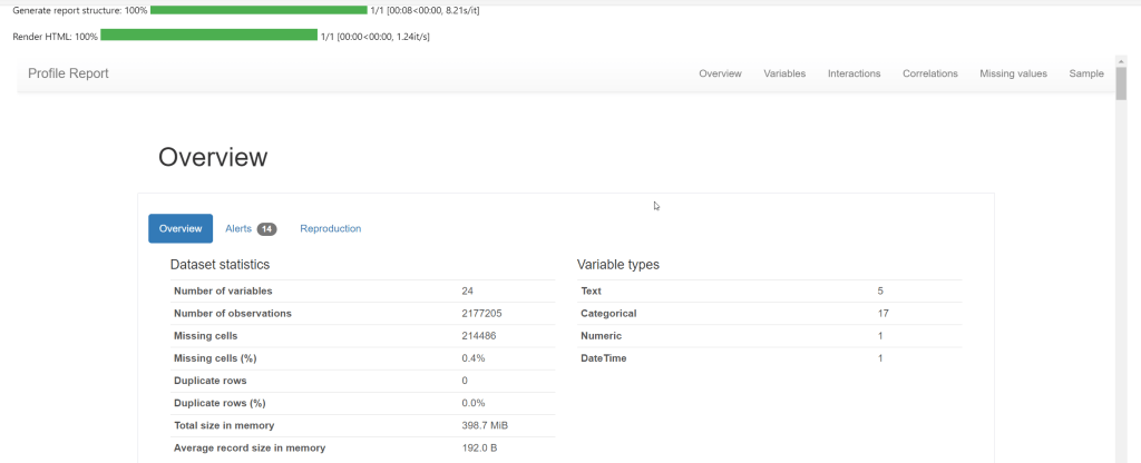 Therefore I started to look into other options. A very popular option appeared quickly when I searched – “ydata-profiling” which is available as a Python Library.