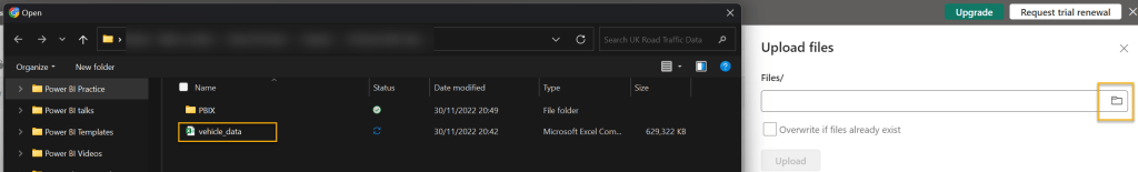 The file (once uploaded) will be available in the “Files” section of our Lakehouse (you may need to refresh the files folder to see it).